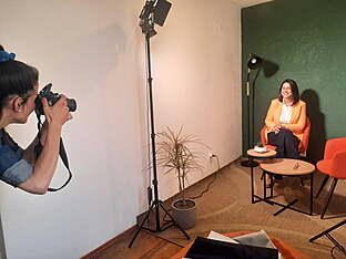 ´Contamos con una sala acondicionada para grabación de audio y con equipamiento de luces y trípodes para fotografía y video.